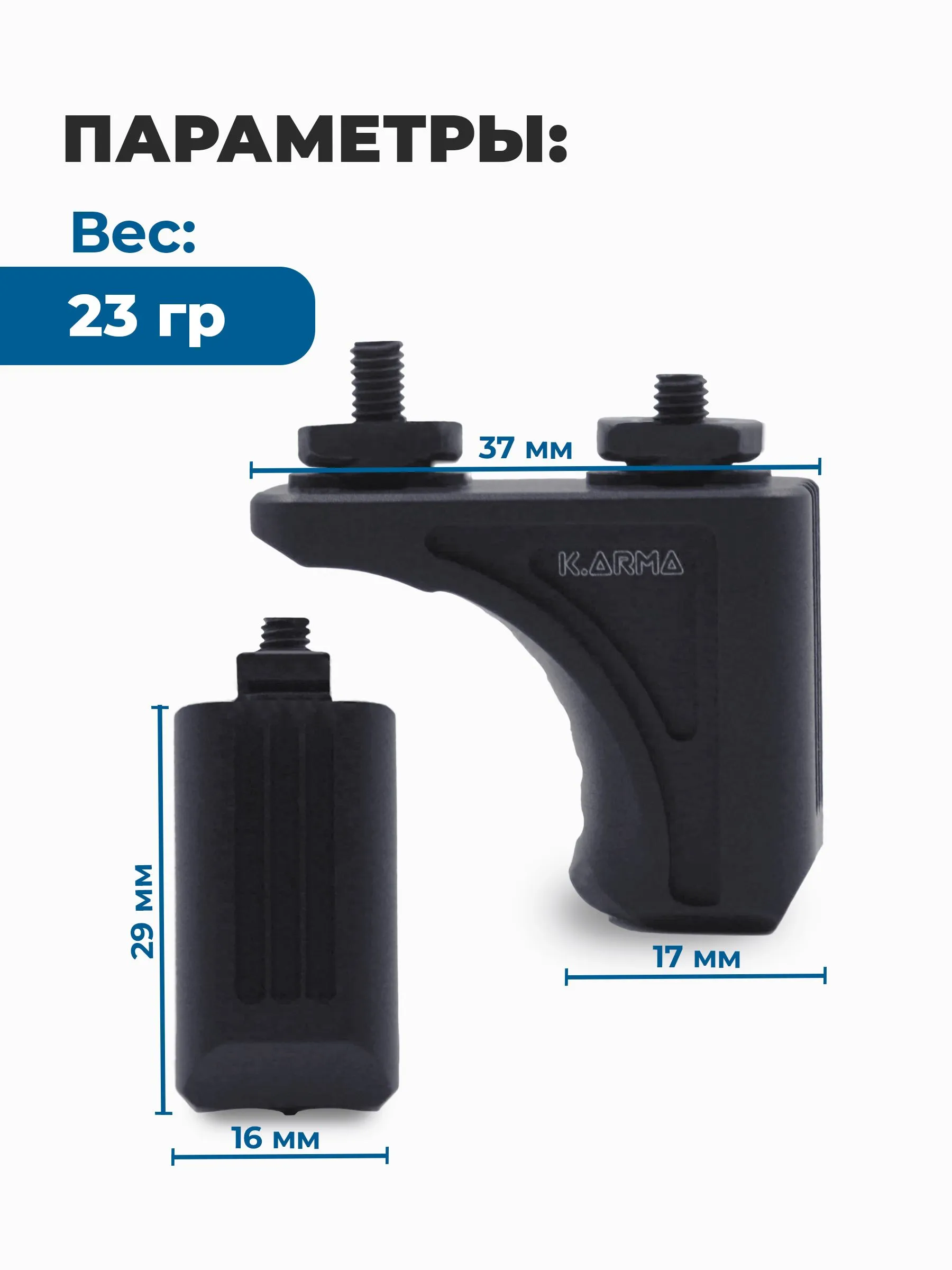 - Упор предназначен для установки на цевьё крепежной системы M-LOK.