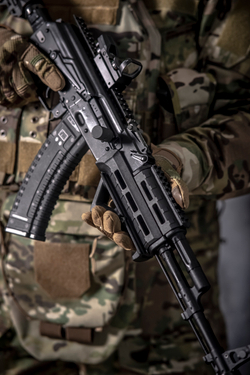 - Система крепления навесного оборудования состоит из 10 слотов Пикатинни расположены на газовой трубке, 14 слотов на планке снизу, а пазы M-LOK по бокам цевья. Это позволит разместить всё необходимое навесное оборудование: тактические рукоятки, фонари, ЛЦУ и антабку для ремня